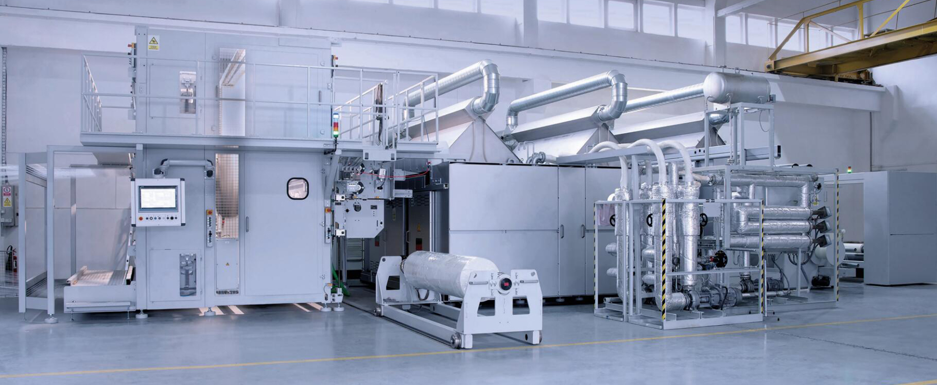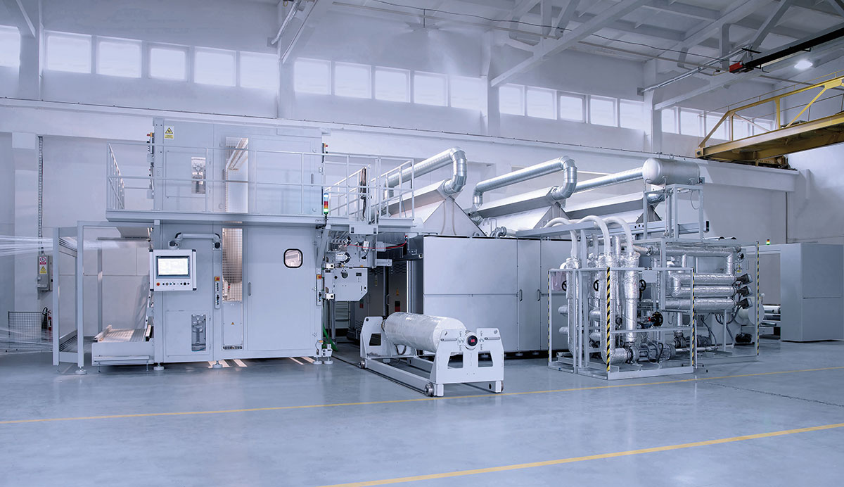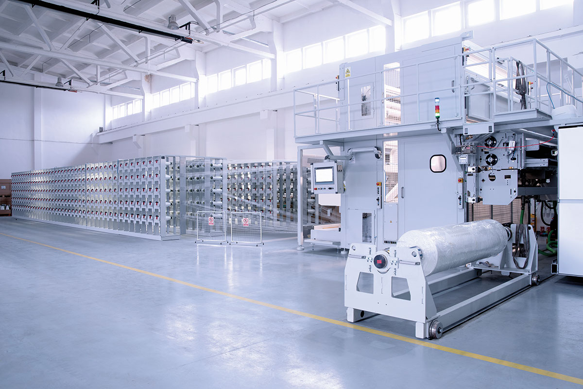 從紗線到布面涂層,烘干,以及材料貼合、裁切與卷取的全流程生產(chǎn)模式