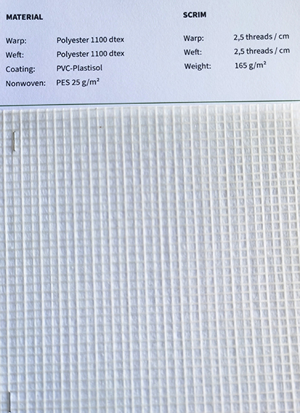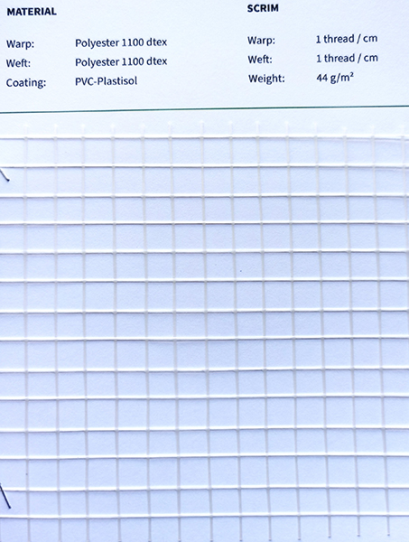 經(jīng)紗Glass 68 tex 緯紗Glass 68 tex 涂層PVC-Plastisol |