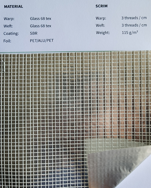 經(jīng)紗Glass 68 tex 緯紗Glass 68 tex 涂層SBR 薄膜PET/ALU/PET |