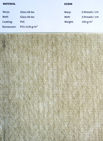 經(jīng)紗Glass 68 tex 緯紗Glass 68 tex 涂層PVC 無紡布PES 2x30 g/m2 |