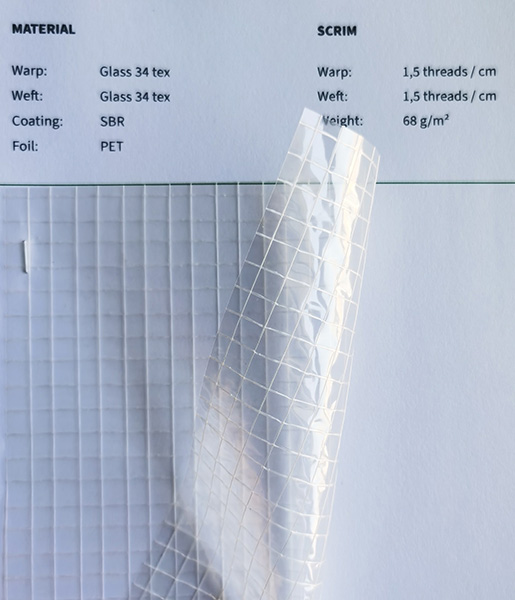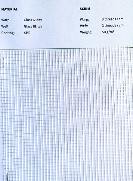 經(jīng)紗Glas Roving 300 tex 緯紗 + 60°Glas yarn 300 tex 緯紗- 60°Glas yarn 300 tex 涂層SBR |